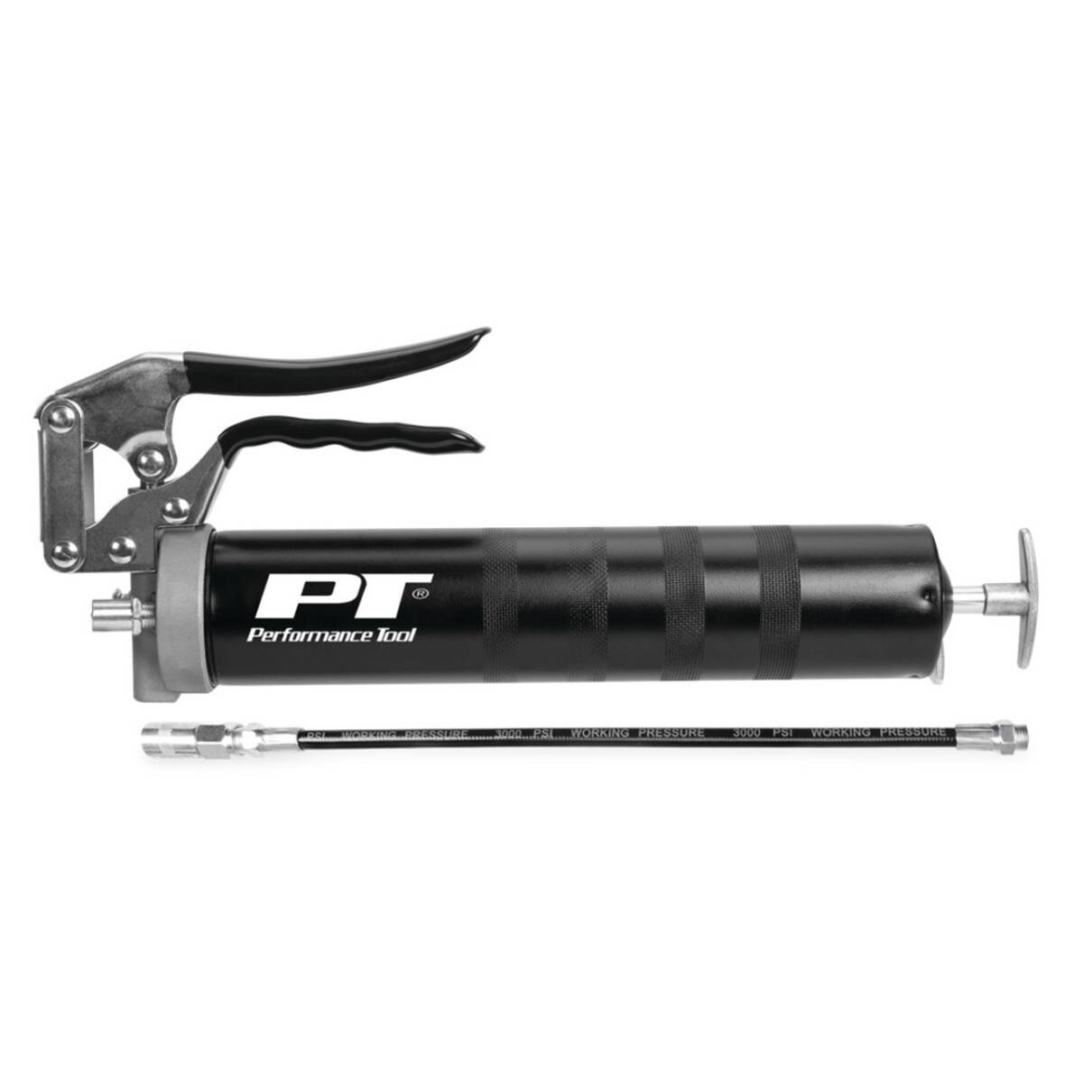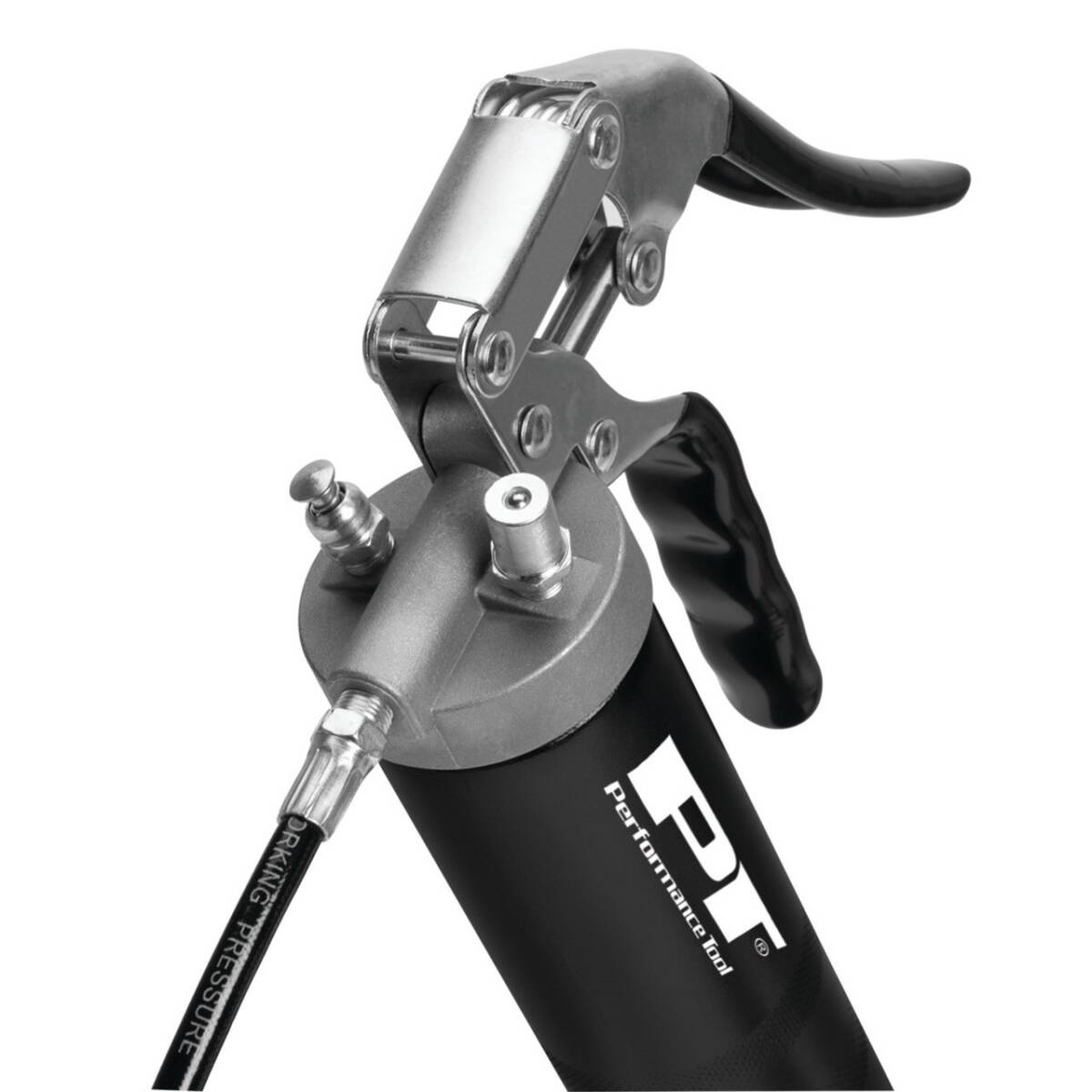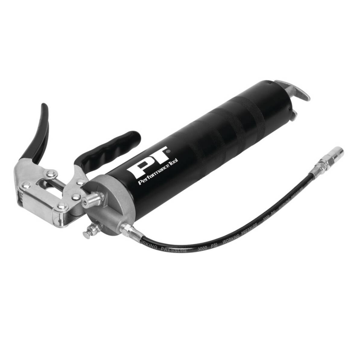 Heavy-duty pistol grip grease gun. Die cast head and a positive lock. Load with cartridges or bulk.