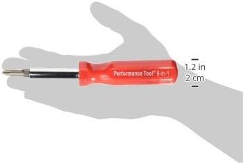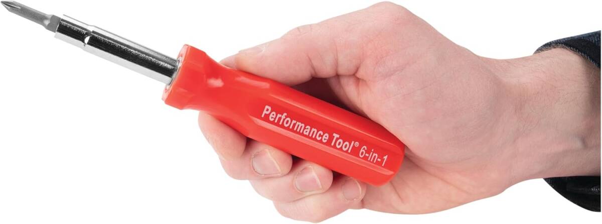 Heavy-duty high-visibility handle. Positive grip double-ended bit holder with 1/4" and 5/16" nut drivers. #1 and #2 Phillips. 1/4" and 3/16" Slotted.