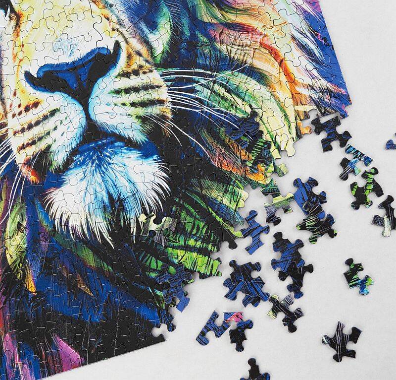 Make a bold statement! This vibrant, 500 piece colorful lion portrait radiates strength and artistry, creating a stunning puzzle that roars with personality. Jigsaw puzzles are a brain-boosting pastime. Assembling the pieces enhances memory, problem-solving, and spatial reasoning. The activity fosters concentration, patience, and a sense of accomplishment. Regular puzzle-solving is linked to improved cognitive function and may reduce the risk of neurodegenerative diseases. Puzzling is not just a game – it's a therapeutic workout for your mind. The process requires concentration and attention to detail, fostering improved focus and patience. In essence, the simple act of piecing together a jigsaw puzzle transcends leisure, becoming a therapeutic activity that nurtures the mind and promotes mental well-being.