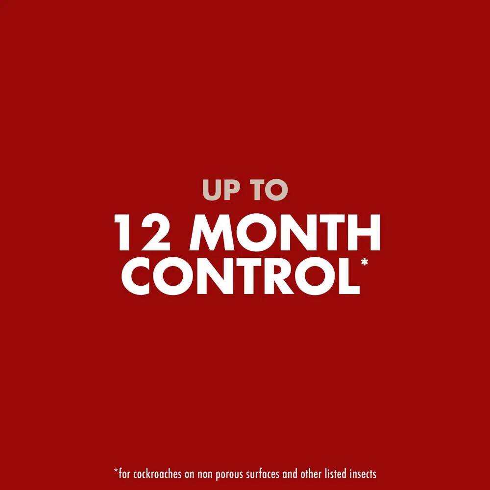 - KILLS ON CONTACT: Provides up to 12 months of control for cockroaches on non-porous surfaces