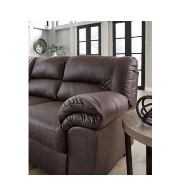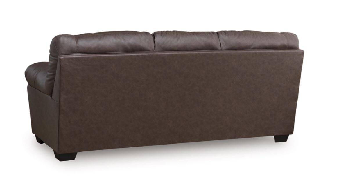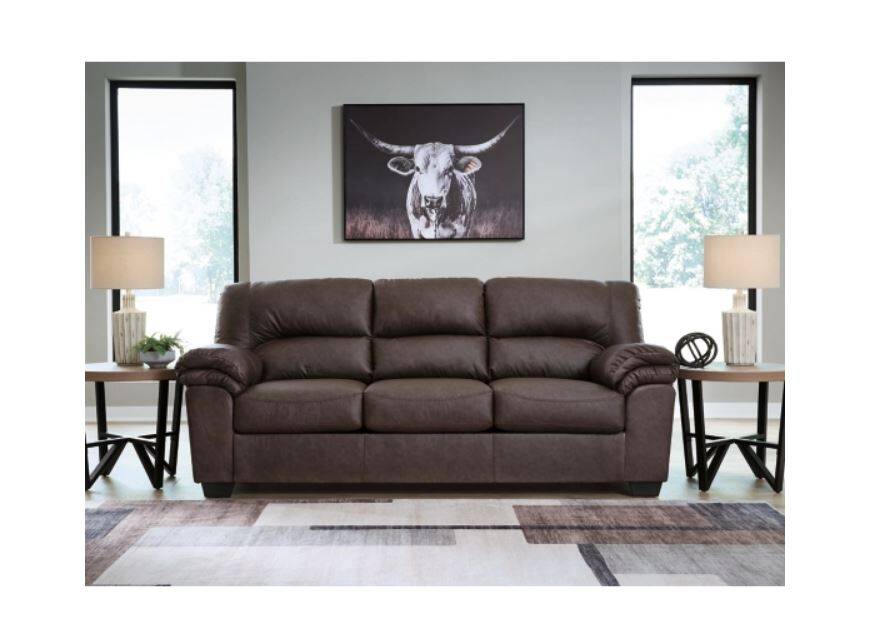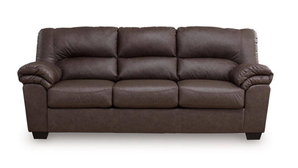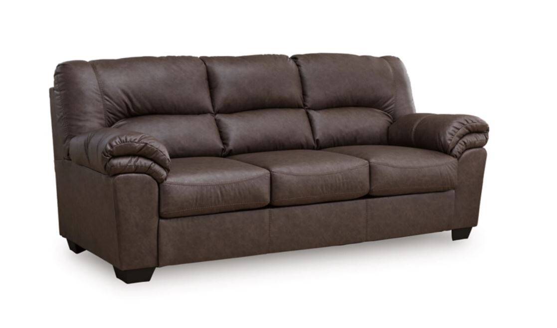 Modern comfort never looked so good. Sporting supremely soft yet durable cushions accented with high-fashion jumbo stitching, this stunning sofa is the ultimate choice in comfortably cool, contemporary style. Its umber-hued faux leather indulges with an upscale feel and wows like the real thing.