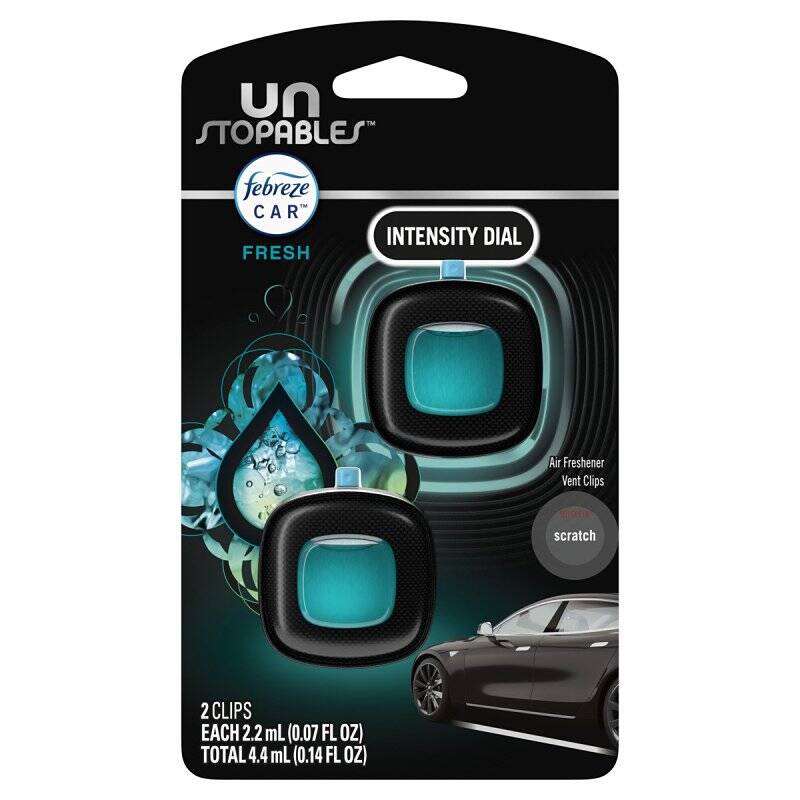 Crank up the fresh-tensity of your car’s air and fight stinks with Febreze Unstopables™ Fresh CAR Vent Clips—filling your vehicle with airy undertones and crisp, vibrant layers that last up to 40 days. Go ahead, just try and stop sniffing… we dare ya.