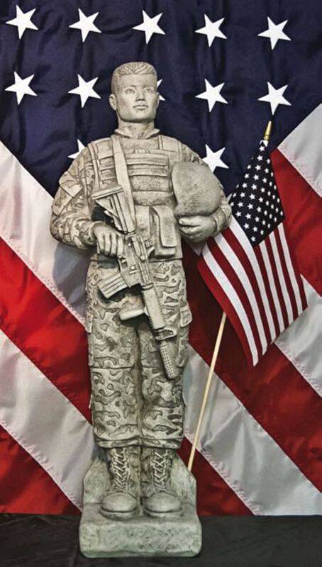 Camo Soldier Garden Statue With Flag In Trevia Greystone Finish