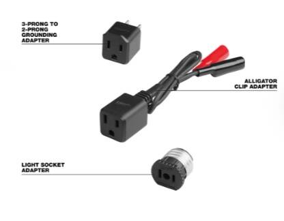 Includes (1) Circuit Breaker Finder Accessory Kit (1) 3-Prong to 2-Prong Grounding Adapter (1) Alligator Clip Adapter (1) Light Socket Adapter