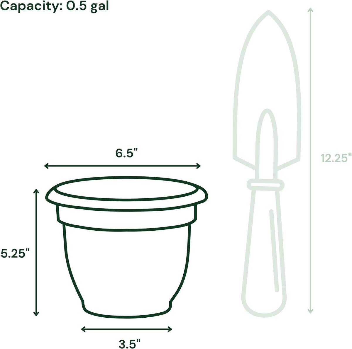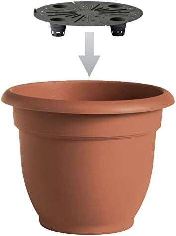 ARIANA COLLECTION by Bloem: The planter waters plants when you’re not looking and helps keep your plants from drying out. Here’s how: Inside the planter, at the bottom, is a hidden reservoir that holds approx. 1 inch to 3.5 inches of water (depending on planter size). The self-watering insert keeps dirt and roots above the hidden reservoir line while constantly providing healthy “greenhouse-like” moisture through the evaporation process. If you’re forgetful, or you’re just not home very often, self-watering containers are a must-have. They’re also helpful if you’re growing in an area that’s not convenient to a water spigot, such as a balcony. How a self-watering planter works: the potting mix is held above the water line by a sturdy screen. The water chamber is connected by small porous channels filled with soil, which then acts as a water wick. As water is used by the plant or evaporates from the surface of the soil, capillary action draws more water up from base of planter. The soil has just the right amount of water all the time, but also maintains air pockets, which the plant roots need to stay healthy. Capacity: 0.5 Gallons / Size: 6.5 in. Top width x 3.5 in. Bottom width x 5.25 in. Height Constructed of high-quality durable plastic resin. Maintenance free and easy to clean. UV-protected for fade resistance. Sealed bottom to prevent leakage indoors. Optional knock-out drainage holes when used outdoors. Self-watering disk included. The disk helps to store reserved water, which can be used up by the plants at a later time. Plant will absorb water when needed. Includes 1 - Bloem Ariana Plastic Round Self Watering Planter Safe for growing fruits, vegetables and herbs (plastic code 2 & 5).