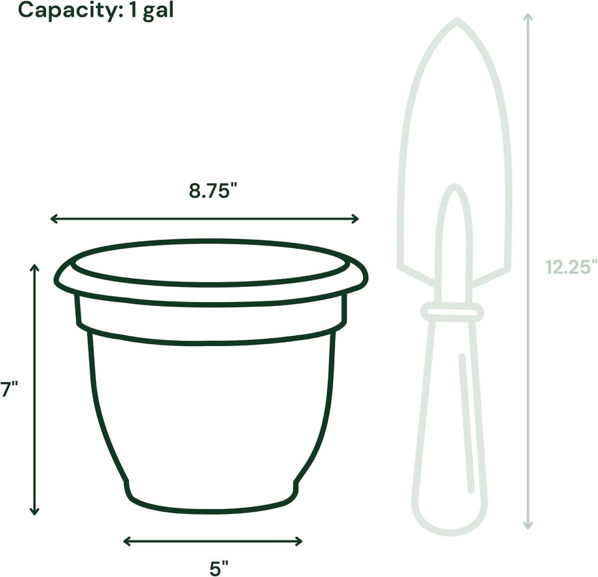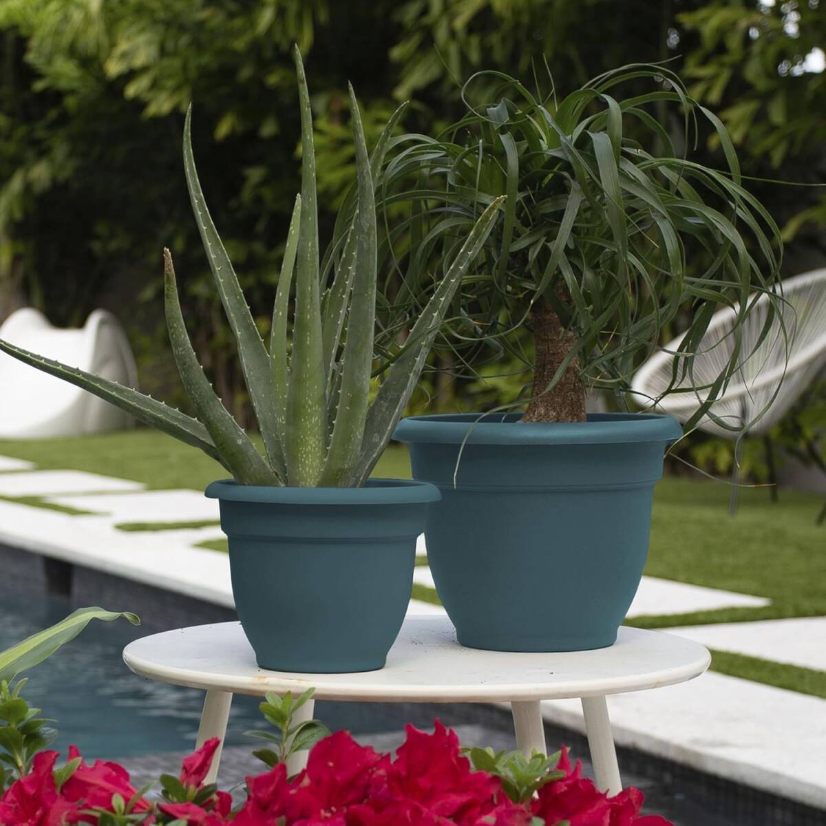 The Bloem Ariana Pot Planter is a versatile and durable resin pot that is perfect for indoor and outdoor use. With a generous capacity and a self-watering disk, this planter helps keep your plants healthy and hydrated, even when you're not around. The sealed bottom prevents leaks indoors, while the optional drainage holes allow for outdoor use. Constructed with high-quality, UV-protected resin, this planter is easy to clean and maintain, making it an ideal choice for growing a variety of plants, fruits, vegetables, and herbs. High-Density Polyethylene (HDPE) #2 & Polypropylene (PP) #5.
