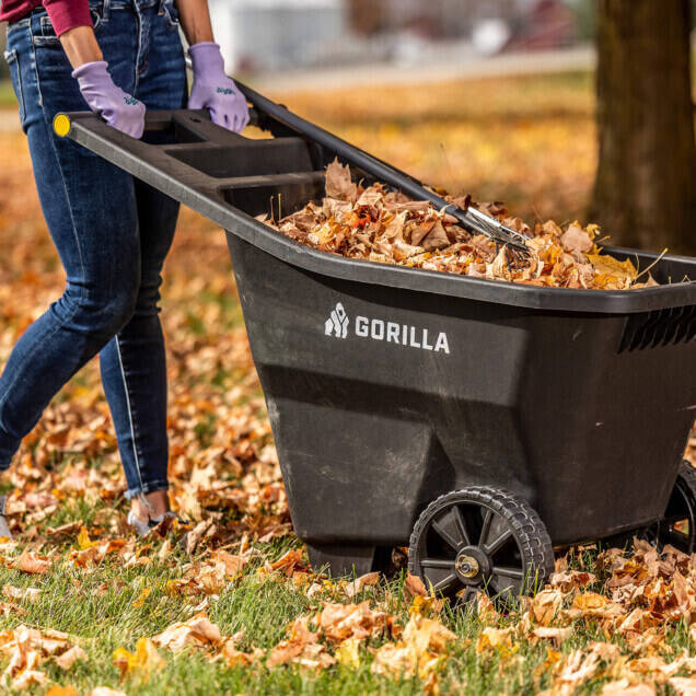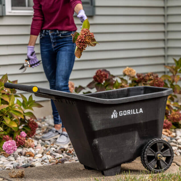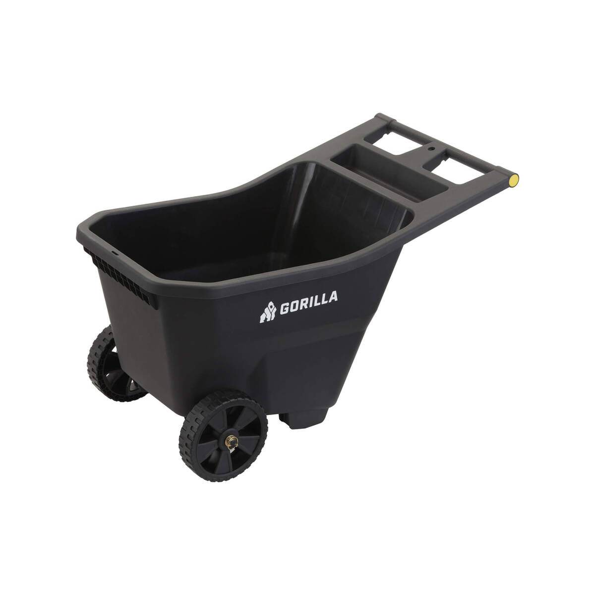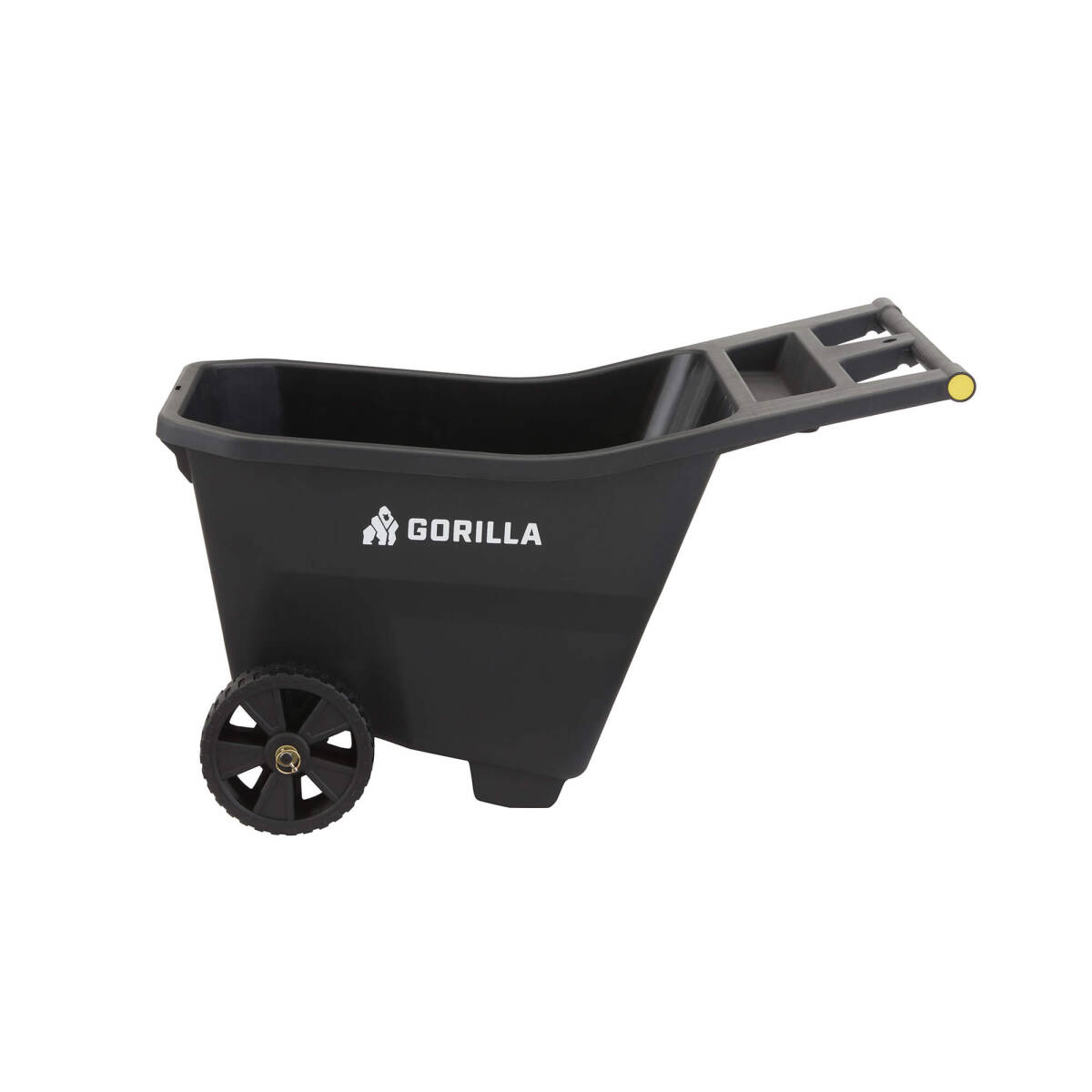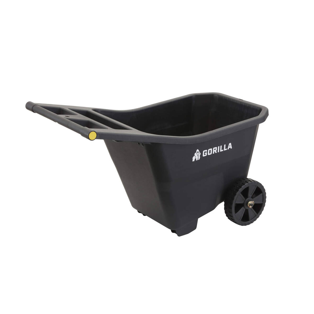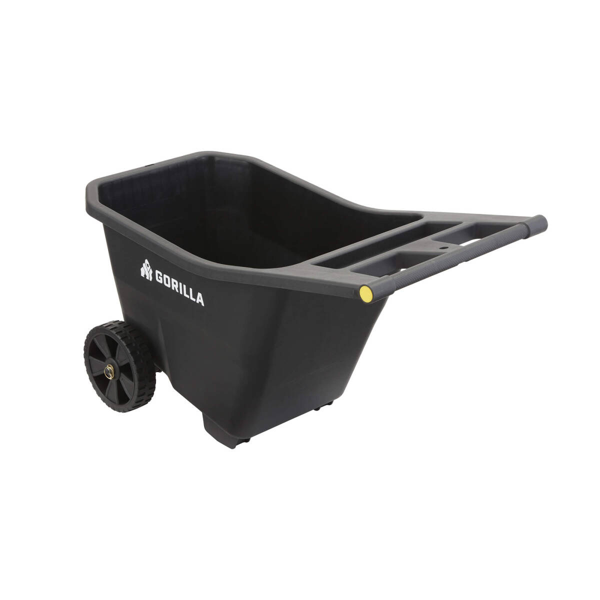 Gorilla Carts Yard Cart, 300 lb Weight, Deck Material: Polypropylene, Deck Size: 4.5 cu-ft, Frame Material: Polypropylene, Wheel Type: Molded, Number of Wheels: 2, Wheel Material: Plastic, Wheel Size: 9 in, Pull, Push Handle, Plastic Handle, Black, 41-1/4 in OAL, 21.8 in OAW, 24.8 in OAH