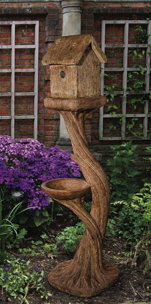 Tall Square Bird House And Feeder In Relic Lava Finish