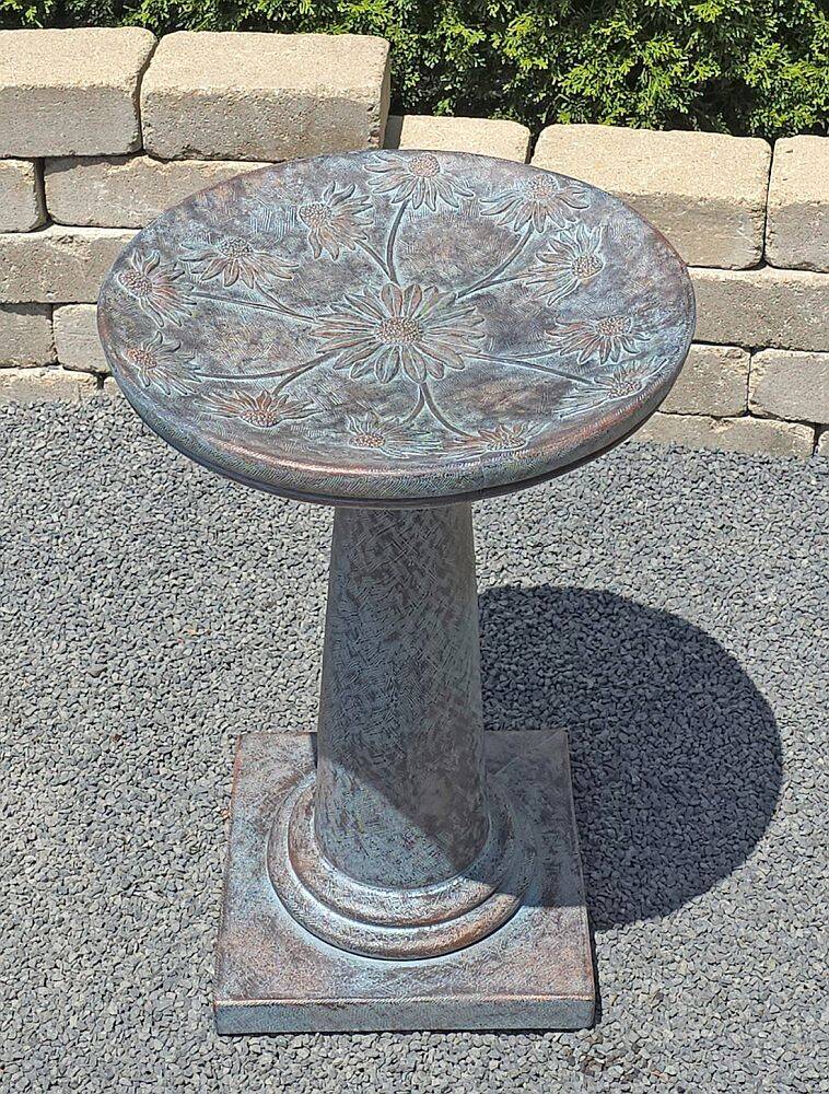 Wildflower Birdbath image shown in Bronze Patina Finish. This item is in Gardenstone Finish. Please see secondary image for actual item color.