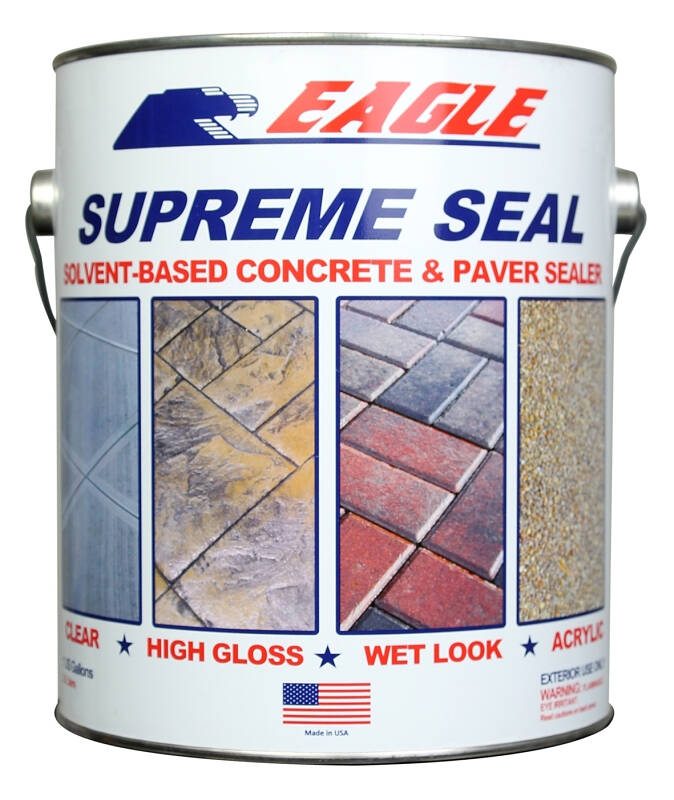 Eagle SUPREME SEAL is a tough, clear, pure acrylic, non-yellowing sealer formulated for all types of concrete. Especially decorative, stained, stamped or colored concrete and provides a high gloss, wet-looking finish. SUPREME SEAL is solvent-based for lasting beauty and durability and will help protect your concrete against weathering and erosion.