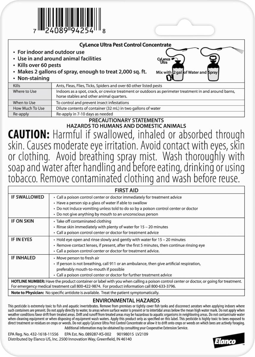 - Broad spectrum pest control: CyLence Ultra pest concentrate kills over 60 pests, including flies, ants, and spiders (Many insect species, including household and agricultural)