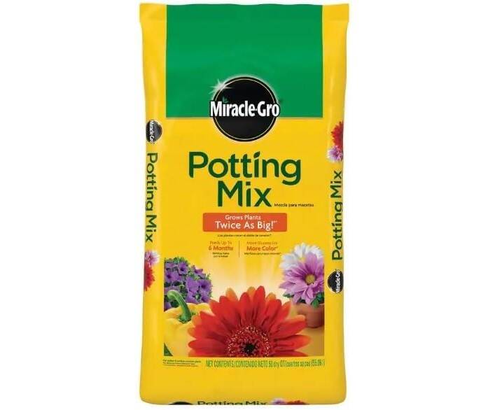 Cultivate a beautiful array of container plants with Miracle-Gro® Potting Mix. This potting soil mix Grows Plants Twice As Big!®* In addition, the added fertilizer feeds all types of container plants for up to 6 months. With this gardening product, you can expect more blooms for more color*. This container mix works best with outdoor container plants, including your favorite flowers, annuals, perennials, vegetables, and shrubs. To apply, select a pot with a drain hole. Fill the pot about 1/3 full with potting soil. Loosen the root ball of your plant and place it in the pot. Add more potting mix and press lightly to level. Water your plant and let it drain. For optimal results, refer to plant tags for specific sun and shade needs. Let mix dry to the touch between waterings; do not allow plants to sit in drainage water.
