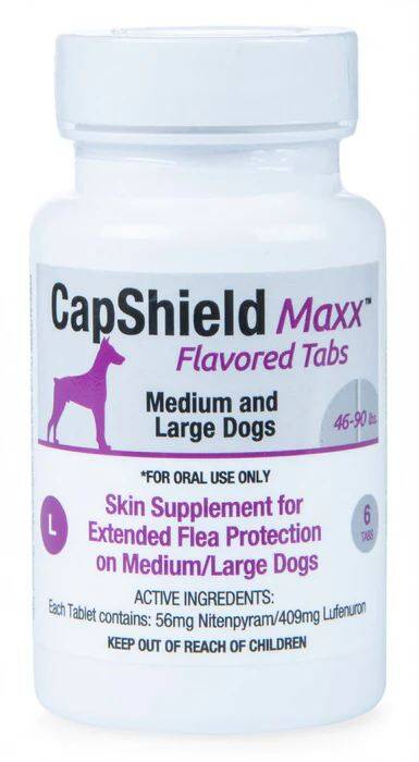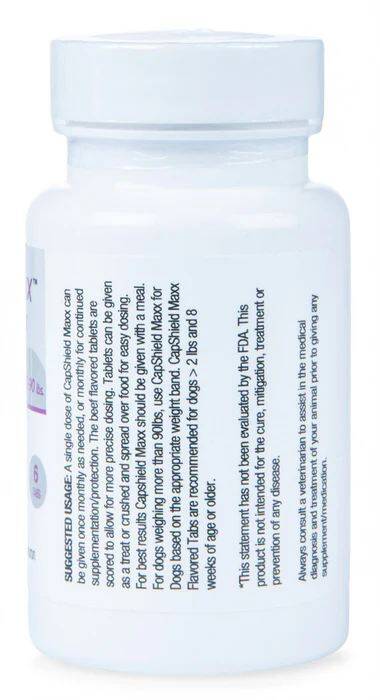 Each bottle includes 6 beef-flavored tablets, designed for easy oral administration on a monthly basis to support your dog's flea control regimen. With CapShield Maxx, you not only ensure an economical approach to flea prevention but also provide your canine companion with a tasty and convenient way to stay protected against these pesky pests. Choose CapShield Maxx for a hassle-free and budget-friendly option in maintaining your dog's optimal health and comfort.