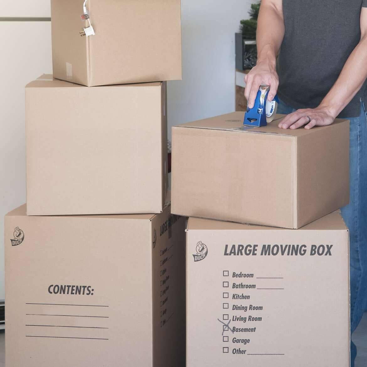 Whether your belongings are on the move, in the mail, or headed for storage, Duck® Brand Corrugate Boxes are perfect to have on hand for whatever project might come up. These sturdy and cost-effective boxes are perfect for storing or shipping books, catalogs, and even larger items. Every box is also made up entirely of recycled content, so you can go green wherever you go. Plus, the foldable format makes it possible to store your boxes and take up less space when you’re not using them.