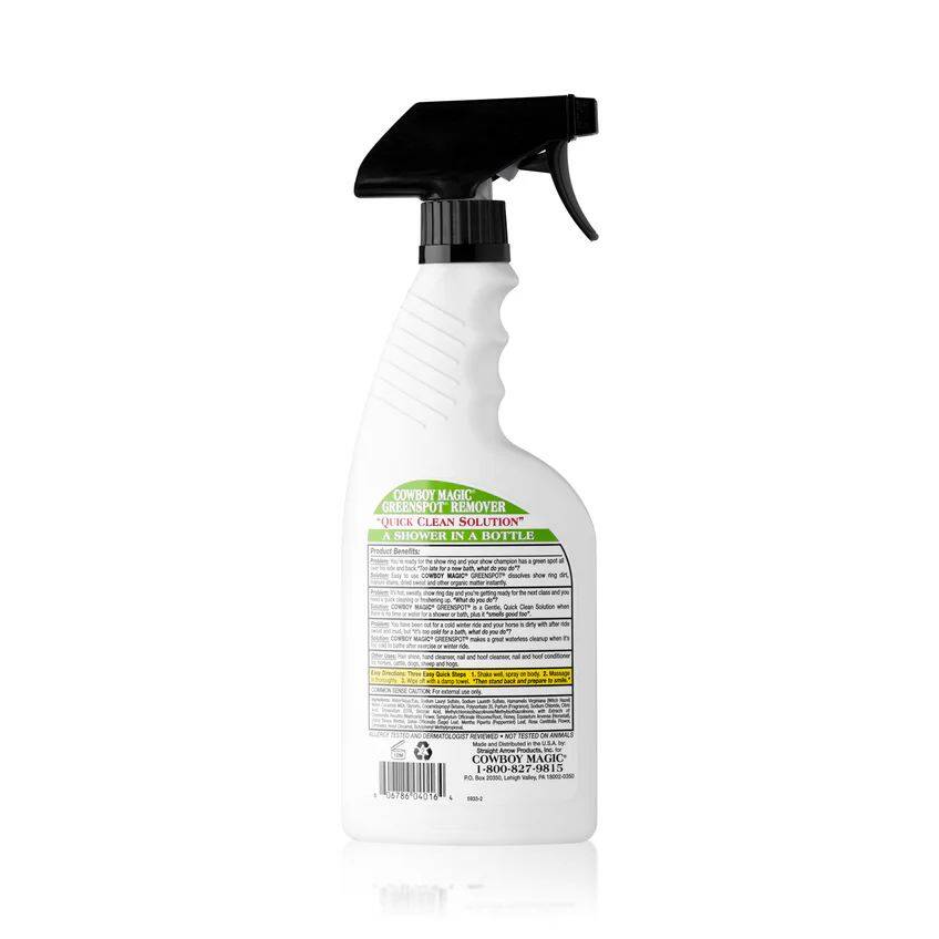 Keep your horse or pet looking show-ready with Cowboy Magic Greenspot Remover. Perfect for quick touch-ups, this waterless shampoo cleans and deodorizes without the need for a full bath. Witch Hazel provides a natural astringent to gently cleanse and refresh, while Honey locks in moisture for added hydration. Glycerin works to soften and condition the coat, leaving it vibrant and revitalized. Ideal for removing manure, dirt, and sweat stains, this product is a lifesaver for on-the-go grooming.