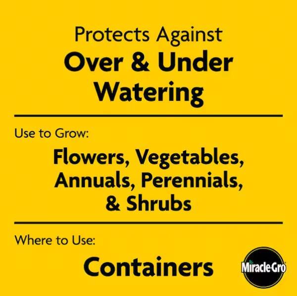 - Miracle-Gro® Moisture Control® Potting Mix feeds plants for up to 6 months and Grows Plants Twice As Big!® (vs unfed plants)