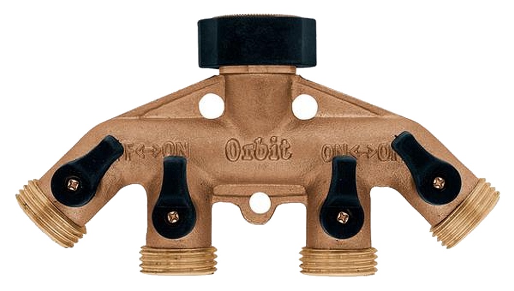 Brass 4-Outlet Hose Faucet Manifold With Shut-Off Valve
