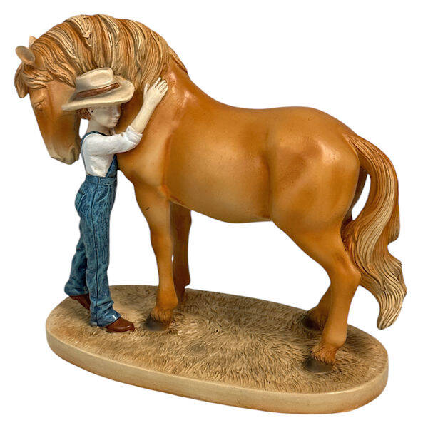 8-1/4-Inch X 6-1/2-Inch Boy With Brown Horse Statue