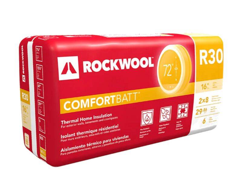 Rockwool Comfortbatt delivers high-performance stone wool insulation for wood studs, joists and floor frames in both new residential construction and renovation projects. Engineered for an R-30 thermal rating, each semi-rigid batt provides exceptional energy efficiency, helping to maintain consistent indoor temperatures and reduce heating and cooling costs year-round.