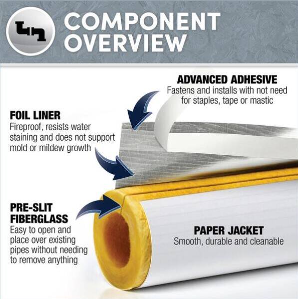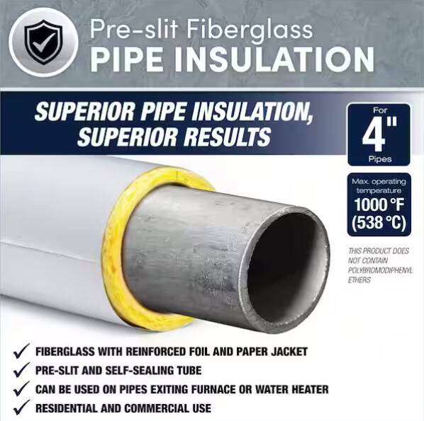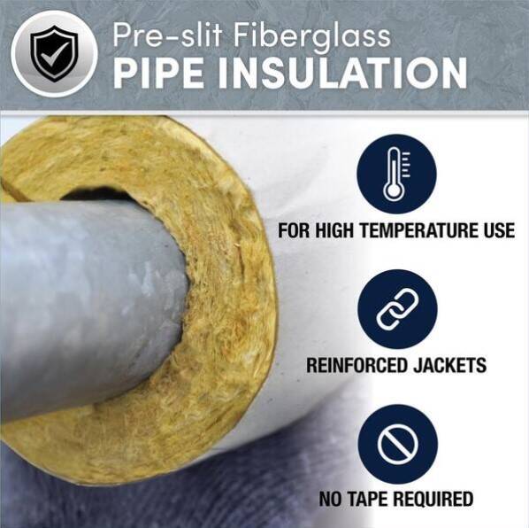 A commercial grade high temperature self sealing fiberglass tube 1/2" thick and 6 feet long with reinforced foil & paper wrap. Used for pipes immediately exiting furnace and water heaters, where foam pipe insulation might not be appropriate.