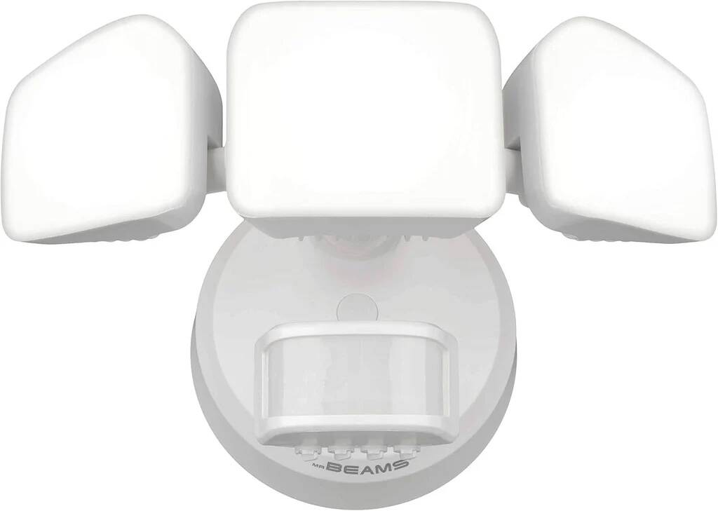- Mr Beams Wired Pro 3-Head Motion Security Light provides 3900 lumens of bright light that cover up to 5290 square feet to instantly increase safety and security around the home. Adjust the spotlight heads up/down and side to side for a customizable coverage area.