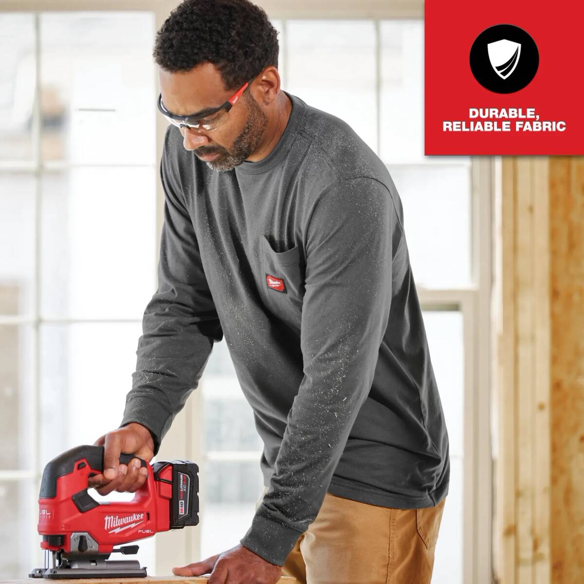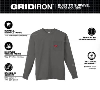 Part of the MILWAUKEE® GRIDIRON™ Collection, our Long Sleeve Pocket Tee is BUILT TO SURVIVE. Our Pocket Tees are built from durable, reliable fabric for ALL DAY PROTECTION to OUTLAST THE JOB. This long sleeve t-shirt is engineered for broken-in comfort on day one and continues to get better over time. Designed with a relaxed fit for plenty of room to move. Our moisture wicking and anti-odor technologies make the Heavy Duty Pocket T-Shirt a go-to any time of year.