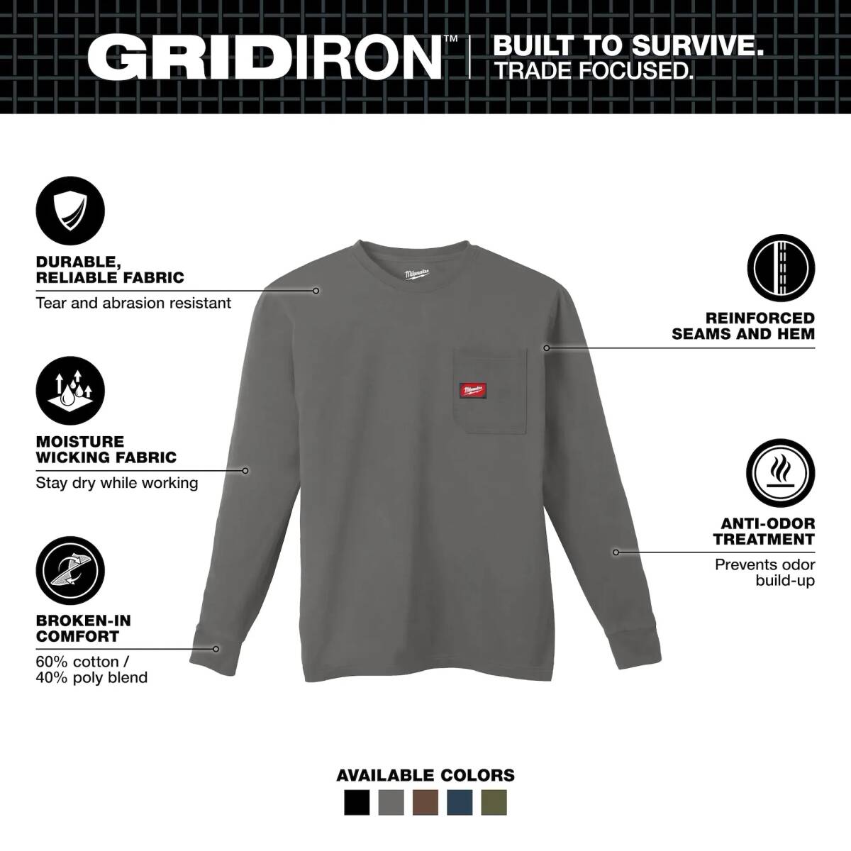 GRIDIRON™ Gray Pocket Long Sleeve T-Shirt, Large