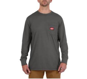 Part of the MILWAUKEE® GRIDIRON™ Collection, our Long Sleeve Pocket Tee is BUILT TO SURVIVE. Our Pocket Tees are built from durable, reliable fabric for ALL DAY PROTECTION to OUTLAST THE JOB. This long sleeve t-shirt is engineered for broken-in comfort on day one and continues to get better over time. Designed with a relaxed fit for plenty of room to move. Our moisture wicking and anti-odor technologies make the Heavy Duty Pocket T-Shirt a go-to any time of year.