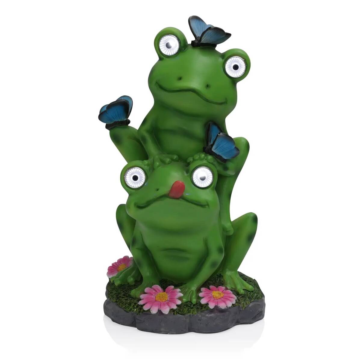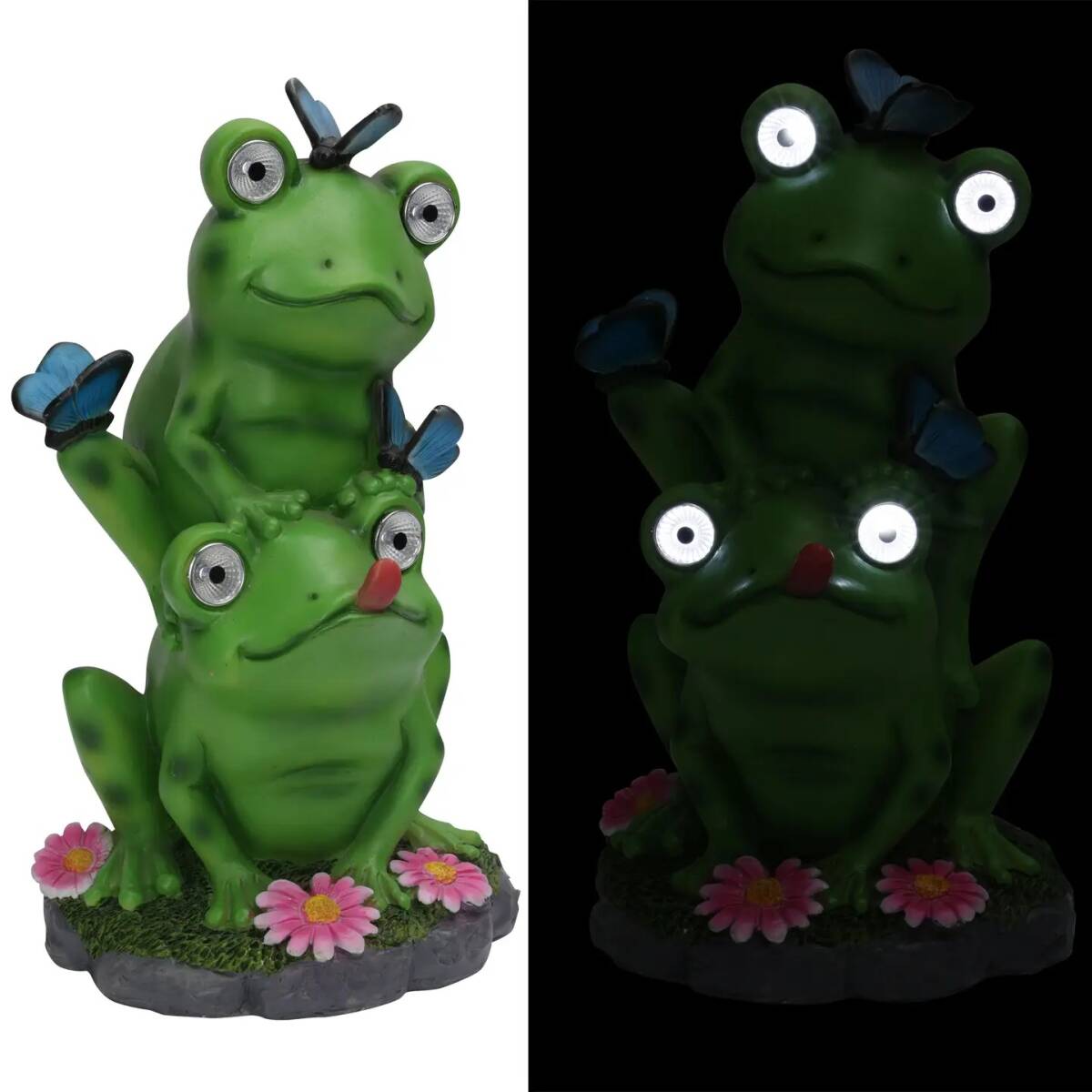 Frog Statue With Solar LED Lights — Garden Statue, Painted, 6 in. W x 12 in. H x 7 in. L