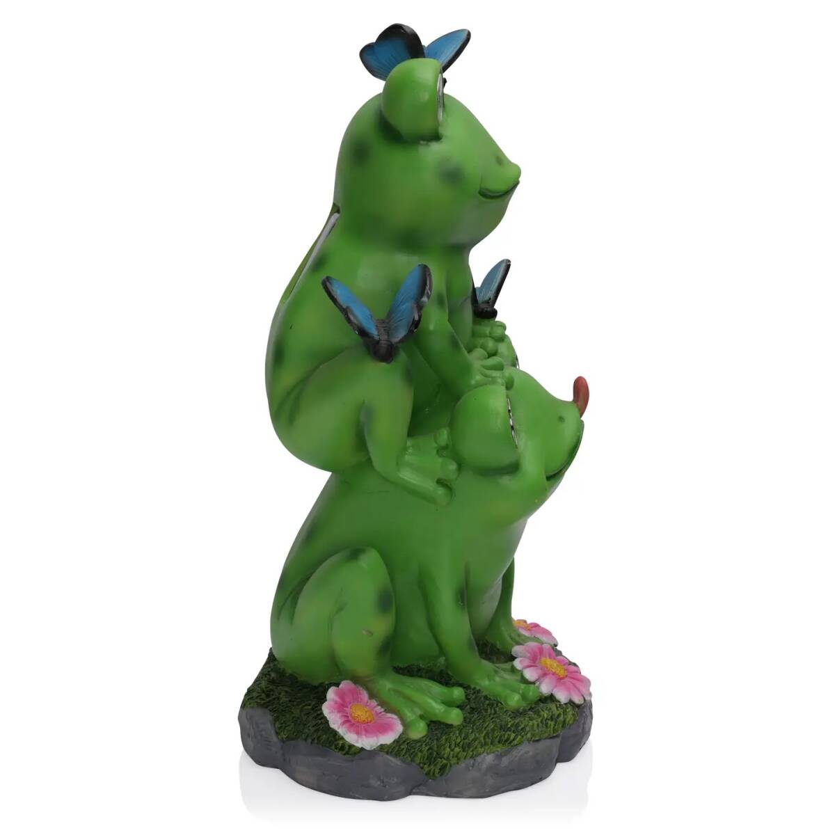 The 12-Inch Frog Statue With Solar LED Lights is a charming outdoor accent that brings whimsy and soft illumination to your garden or patio. Made from painted polyresin in a green color family, this 12-inch-tall statue measures 6 inches wide and 7 inches long, providing a noticeable but space-conscious focal point near flower beds, planters, ponds, or along walkways. Integrated solar LED lighting casts a gentle 3-lumen glow after dark, powered by a rechargeable AA 1.2 V battery charged by daylight, so it lights up evenings without wiring. Use it to add personality among hostas, highlight edging at night, or create a cozy spot on a porch where the soft light complements other outdoor décor. Its durable painted finish keeps the playful look visible through the seasons.