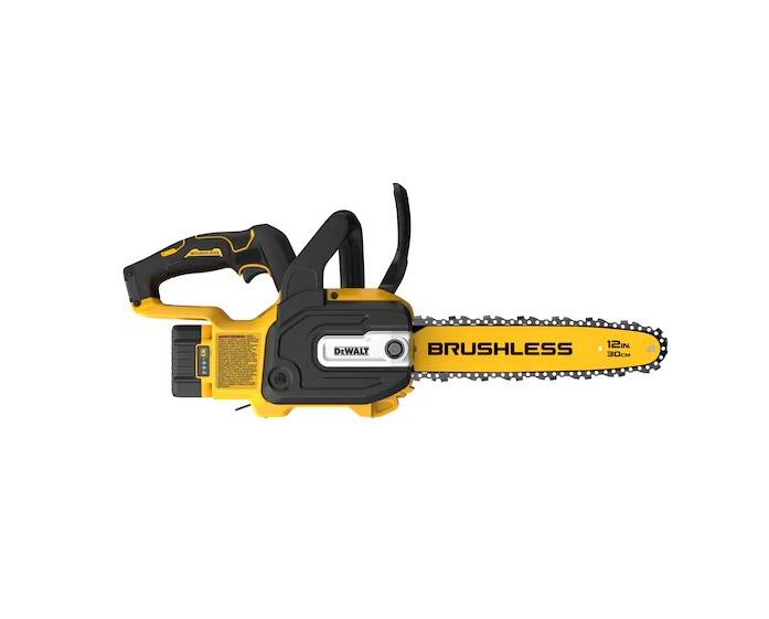 The 20V MAX* 12 in. Compact Brushless Cordless Chainsaw Kit delivers a gas-free operation that eliminates cold starts, fumes, carburetor issues, and helps minimize maintenance compared to gas-powered chainsaws. This battery-powered chainsaw is designed for outdoor jobs like cutting tree limbs and branches. Lightweight design engineered to provide controlled cuts. This cordless, compact chainsaw features a high-efficiency brushless motor built to help maximize runtime. Powered by the included 20V MAX* battery, this chainsaw kit offers compact convenience and professional versatility.