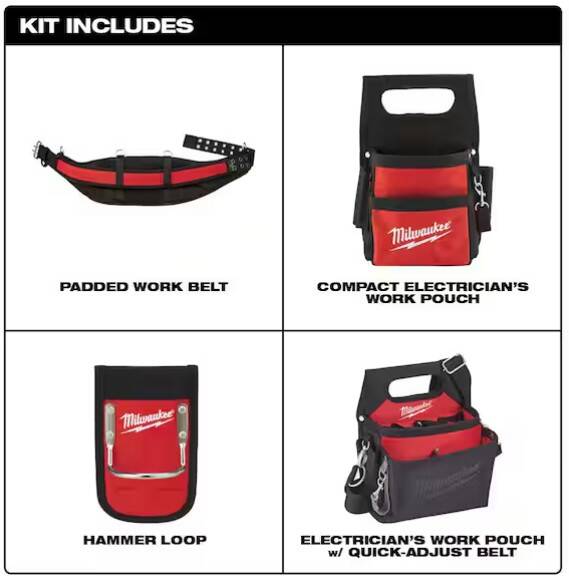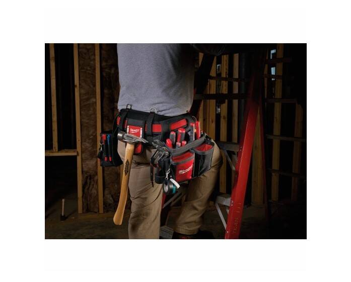 Milwaukee Work Gear is Nothing But Heavy Duty. Designed with professional tradesmen in mind and Built with 1680Denier Nylon, Riveted Seams, and All Metal Hardware, Milwaukee work gear is up to 5X More Durable than competitive products and provides users with unmatched Durability, Comfort and Organization. The Electrician's Work Belt provides users with 29 pockets to organize their tools and incorporates a solid base that allows the belt to remain upright when set on a flat surface. The integrated handles allow the individual bags to be removed and easily transported from and task to task, while the metal tape measure clip securely stores a tape measure for easy access. A plastic lined puncture-resistant pocket allows users to store sharp objects, such as jab saws, without worry of damaging their bags and the included work belt is padded and breathable for all day comfort. This combination of extreme durability and functionality confirms Milwaukee’s commitment to providing innovative, durable solutions to the end user.