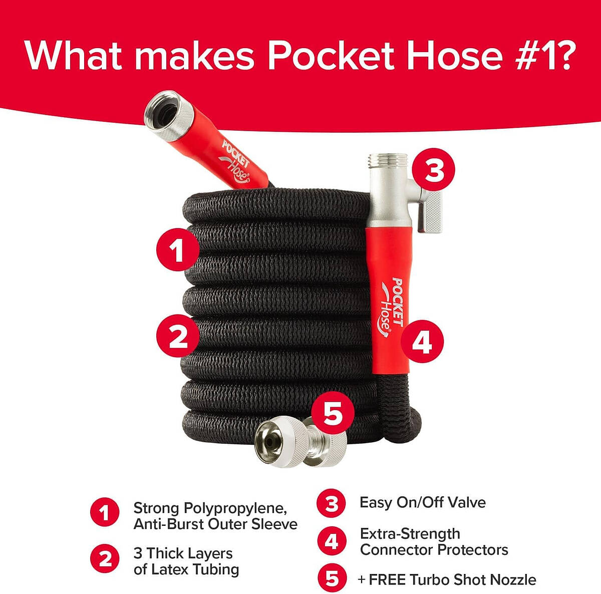 - AS-SEEN-ON-TV POCKET HOSE: The Original Hose That Grows with over 126 worldwide patents