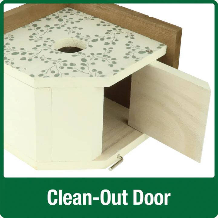 Crisp cream base with swirling green leaves, bringing a serene, garden-inspired touch. Use it as a functional birdhouse or as a decoration, bringing charm to your patio, garden, or indoor spaces.