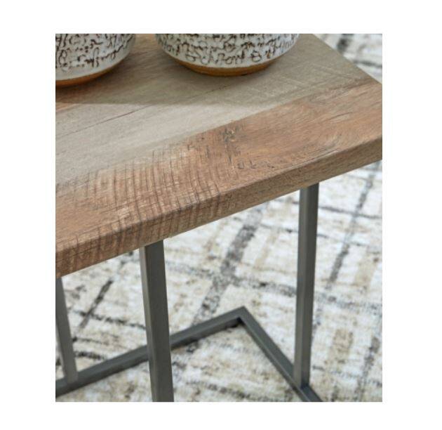 Simply chic, this table set reflects your less-is-more approach to contemporary style. Tabletops with the look of reclaimed lumber contrast beautifully with the sleek steel frames. The set is ideal for apartments and small space living, with a rectangular design perfect for sliding in next to your chair or sofa.