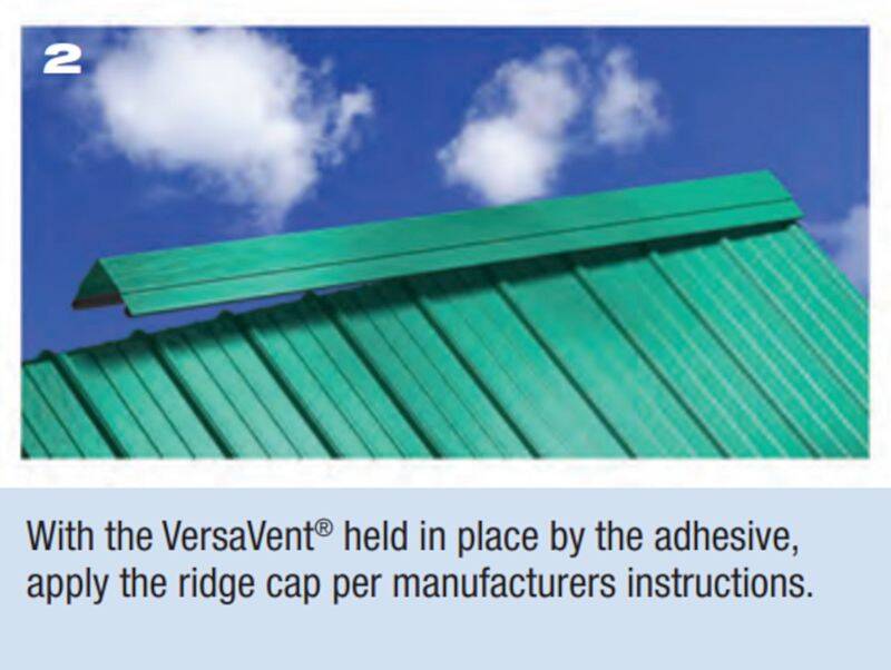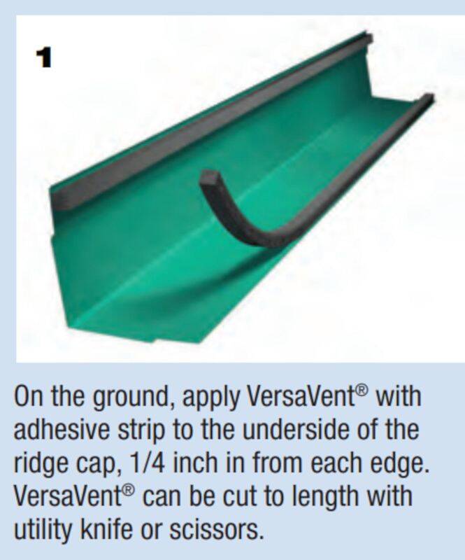 Versa Vent is material that is applied to the ridge cap at the job site. It's easy for one person to install on the ground, and has a strip of continuous glue that keeps the material in place during roof ridge installation.