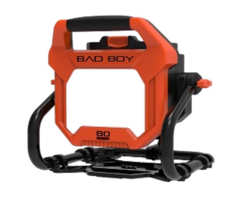 The Bad Boy E-Series Work Light is a powerful and versatile lighting solution designed for various work environments. With its impressive 2500 lumen brightness, this work light provides exceptional illumination for any job site or home project. The extended 9-hour runtime on a single charge ensures uninterrupted work, while the simple on/off settings make operation hassle-free. This hybrid work light offers flexibility by operating with either an 80V battery or an extension cord. The integrated hanging hook allows for easy positioning and hands-free use, making it an essential tool for professionals and DIY enthusiasts alike. Battery and charger sold separately.