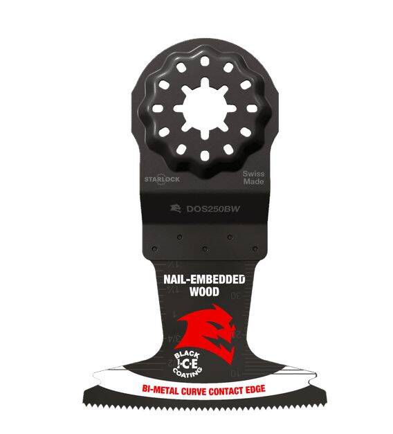 Diablo’s Demo Demon™ Starlock bi-metal oscillating blades feature application specific designs that deliver maximum durability and longer life in nail-embedded wood applications. These high-performance blades feature an ultra-hardened cutting edge to deliver up to 5X longer life than standard blades. Curve contact edge creates a pilot for precise, clean plunge cuts with less vibration. Black I.C.E. (Industrial Cooling Element) coating protects cutting edge against wear for extreme durability and longer blade life. Tool free quick-change interface fits Fein and other Starlock tools; also compatible with most non-Starlock multi-tools.