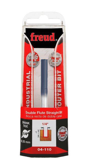 Freud's huge selection of carbide tipped and solid carbide double flute straight bits are ideal for grooving, edge-routing and other general purpose routing tasks. The precise hook and shear angles provide fast cutting and a smooth finish in hardwood, softwood, plywood and composite materials. Tips are relieved to allow for efficient plunge cuts. Designed for use in CNC, hand-held and table-mounted routers.