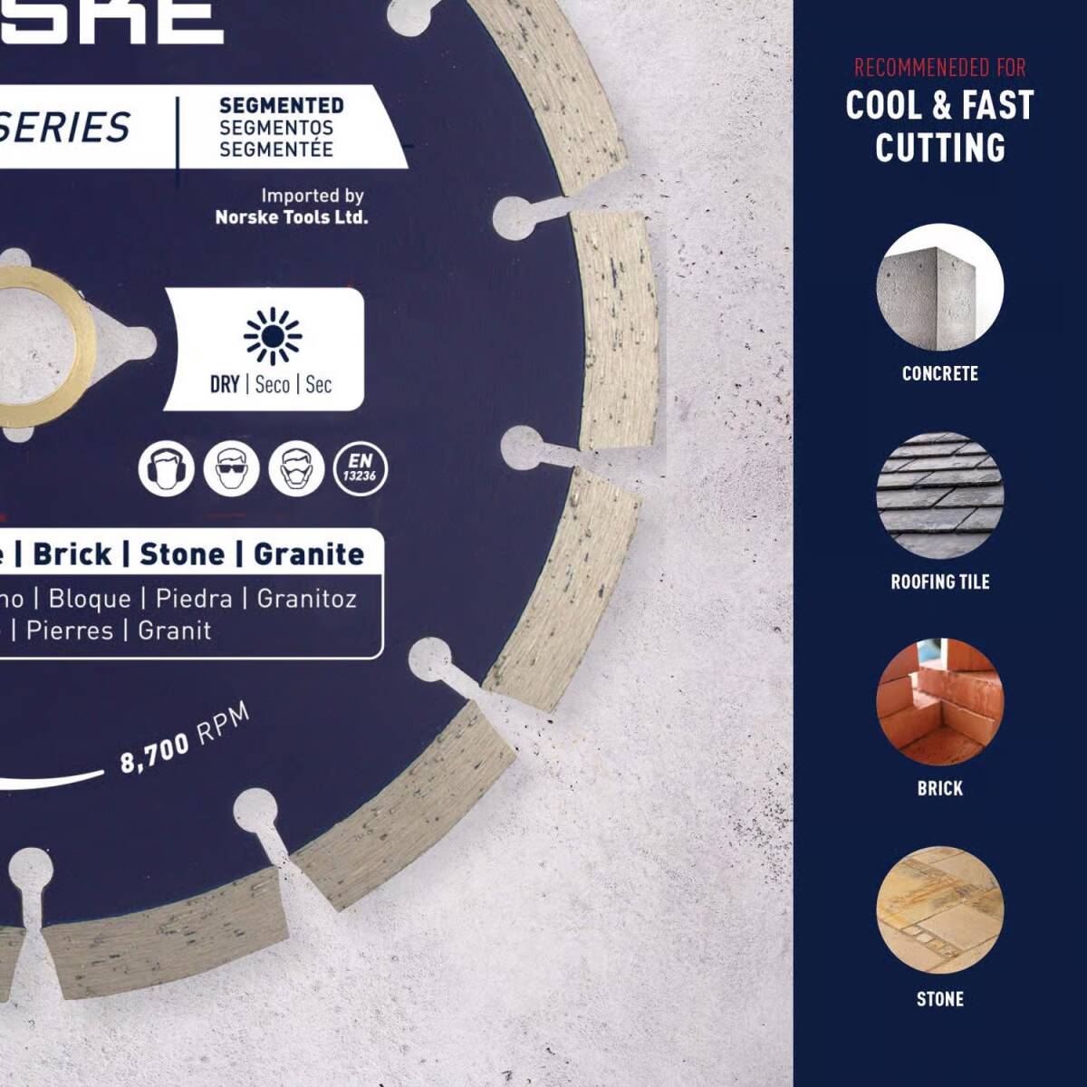Norske diamond blades are designed to be used with a variety of power tools for making cuts in a variety of masonry materials. The high-quality steel core is expertly tensioned for true cuts and added durability.