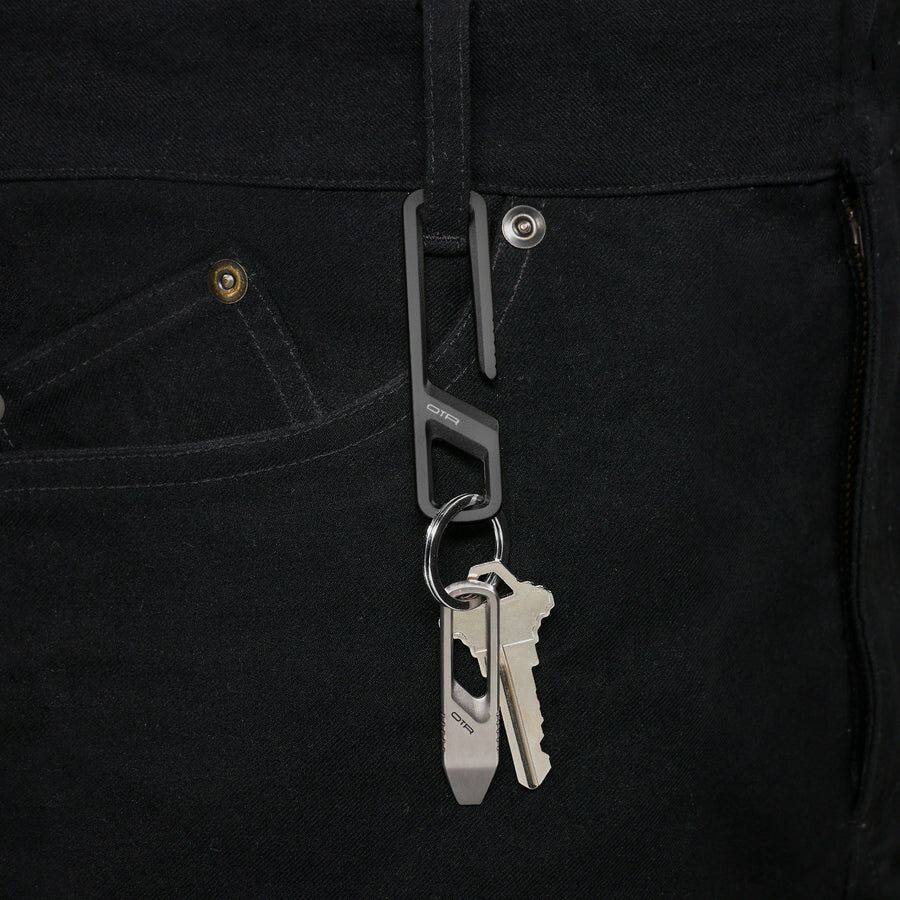 Hello, slim. This “barely there” belt clip fits seamlessly and effortlessly within standard belt loops. You can neatly attach all your everyday carry items to the bottom of the clip. And the durable 6061 aluminum is built to keep you moving forward with style and confidence. Which is exactly what OTR is all about.