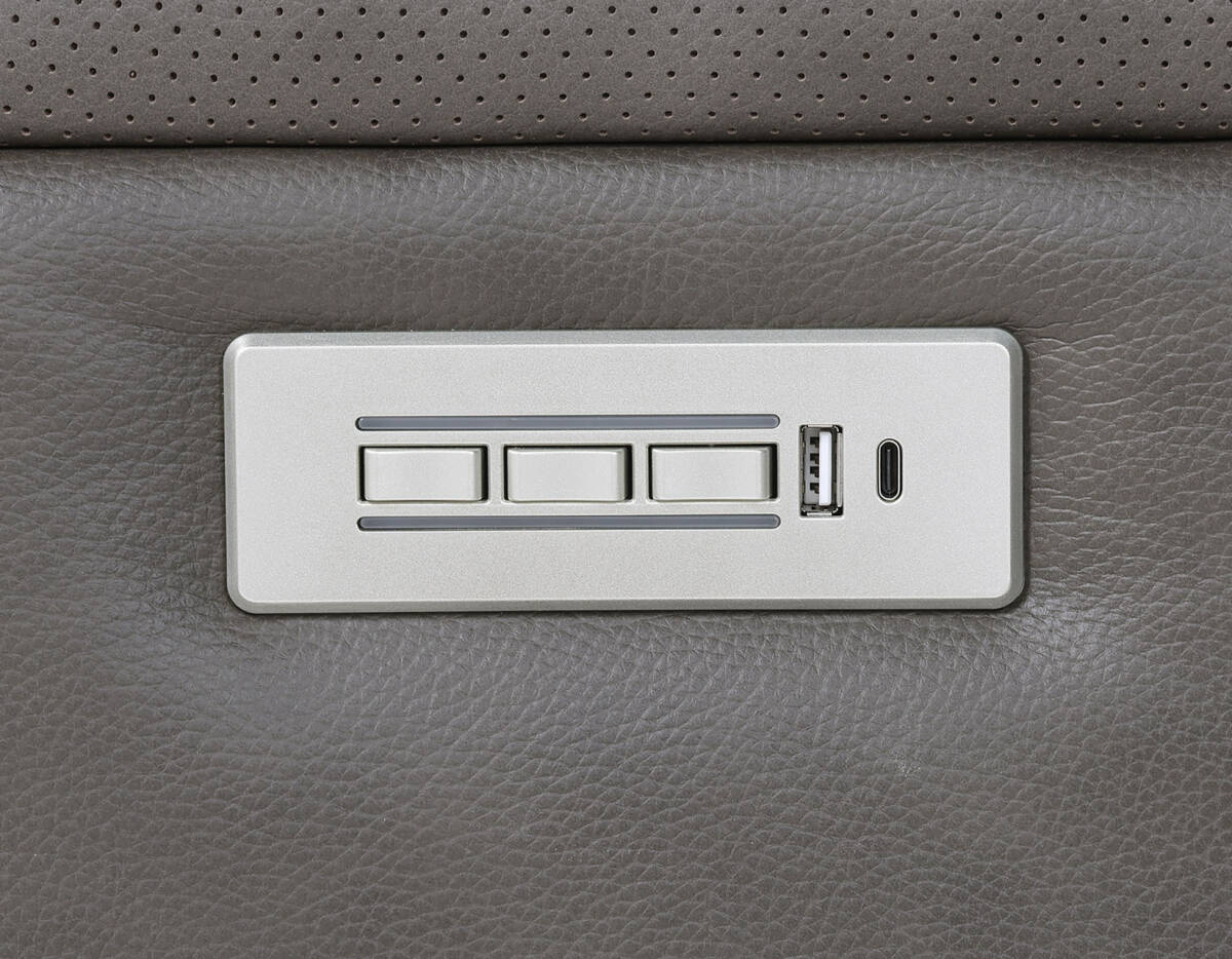 Experience the theater from the comfort of home with the Daniel Triple-Power Leather Reclining Immersive Entertainment Console Loveseat. Wrapped in plush, mossy-gray leather, this sofa is designed for immersive entertainment. Built-in speakers, a subwoofer, and vibration transponders surround you with lifelike sound, while air massage and soothing heat settings add next-level relaxation. A convenient center console offers wireless charging, USB-A &C charging, integrated lighting, easy-access controls and handy storage, keeping everything within reach.
