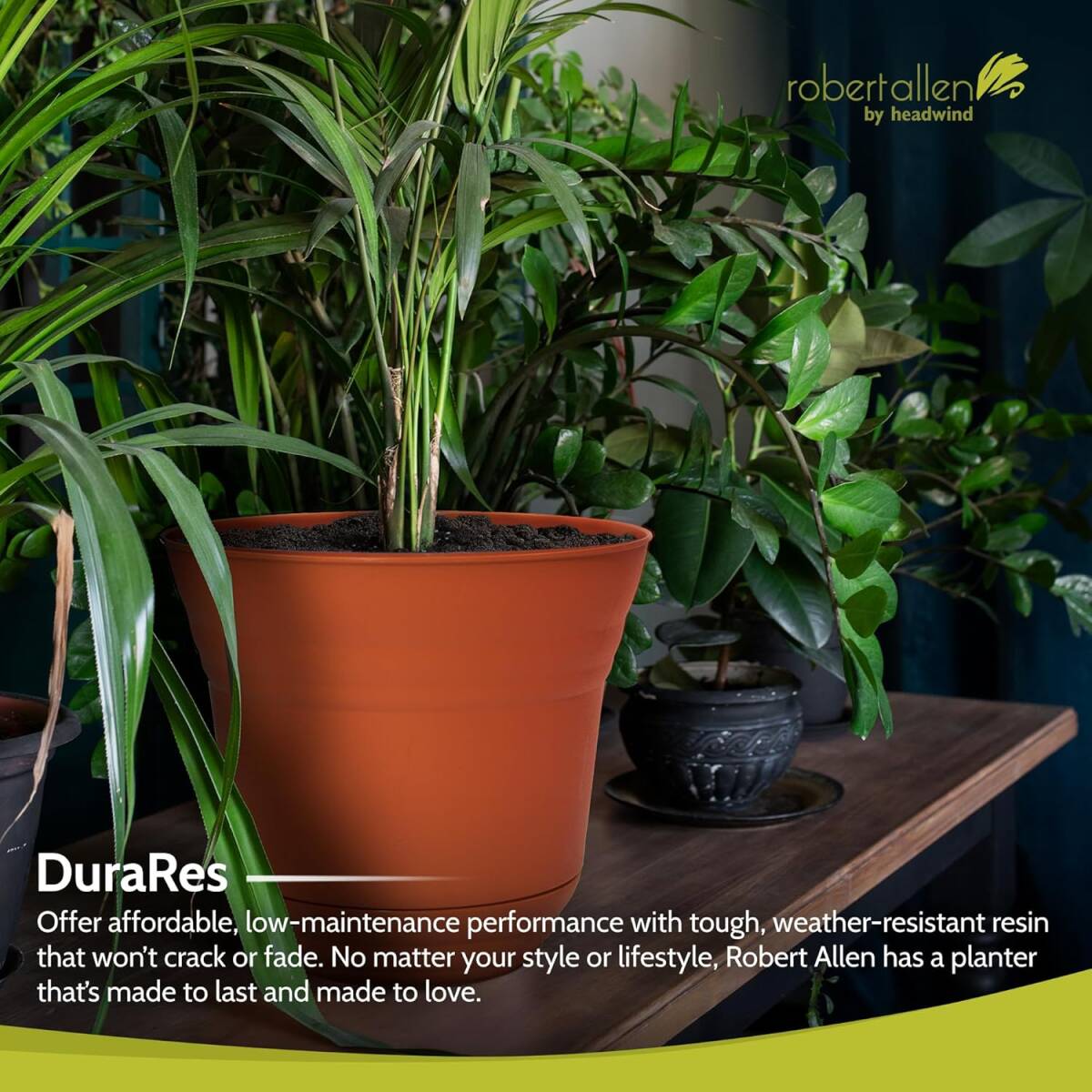 Add color, durability, and versatility to your plant display with the Robert Allen DuraRes Traverse Planters—a thoughtfully designed collection of plastic pots made for both indoor and outdoor use. Whether you're planting on a windowsill, decorating your patio, or refreshing your home office with greenery, these planters combine style and function to meet all your planting needs. Crafted from durable, weather-resistant plastic, each plastic plant pot is built to withstand sun, rain, and seasonal changes without fading or cracking. Lightweight yet sturdy, they're easy to move and rearrange, making them ideal for creating dynamic plant displays in any space—indoors or out. Designed with a built-in drainage hole, these house plant pots with drainage support healthy root systems and help prevent overwatering—perfect for succulents, herbs, flowers, and foliage of all types. Whether you're planting a single bloom or creating a layered indoor garden, there's a size and color combination to suit every project. Ideal for beginners and seasoned plant lovers alike, these plastic planters offer the perfect blend of low-maintenance care, stylish design, and long-lasting performance. Refresh your home, patio, balcony, or garden with the dependable charm of Robert Allen DuraRes Traverse Planters—where modern design meets everyday function."