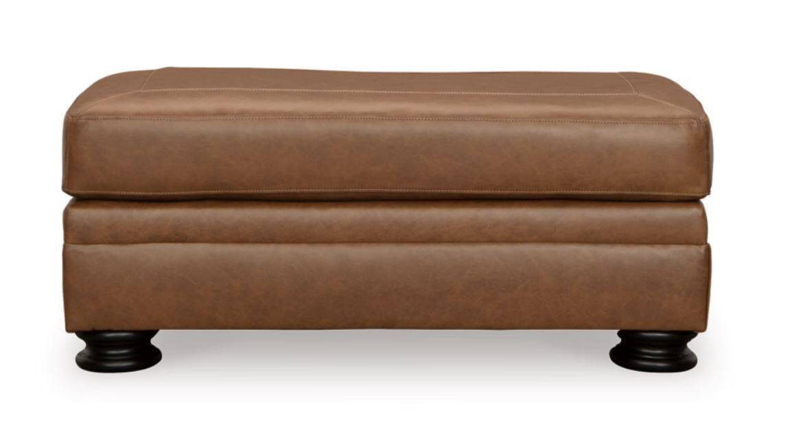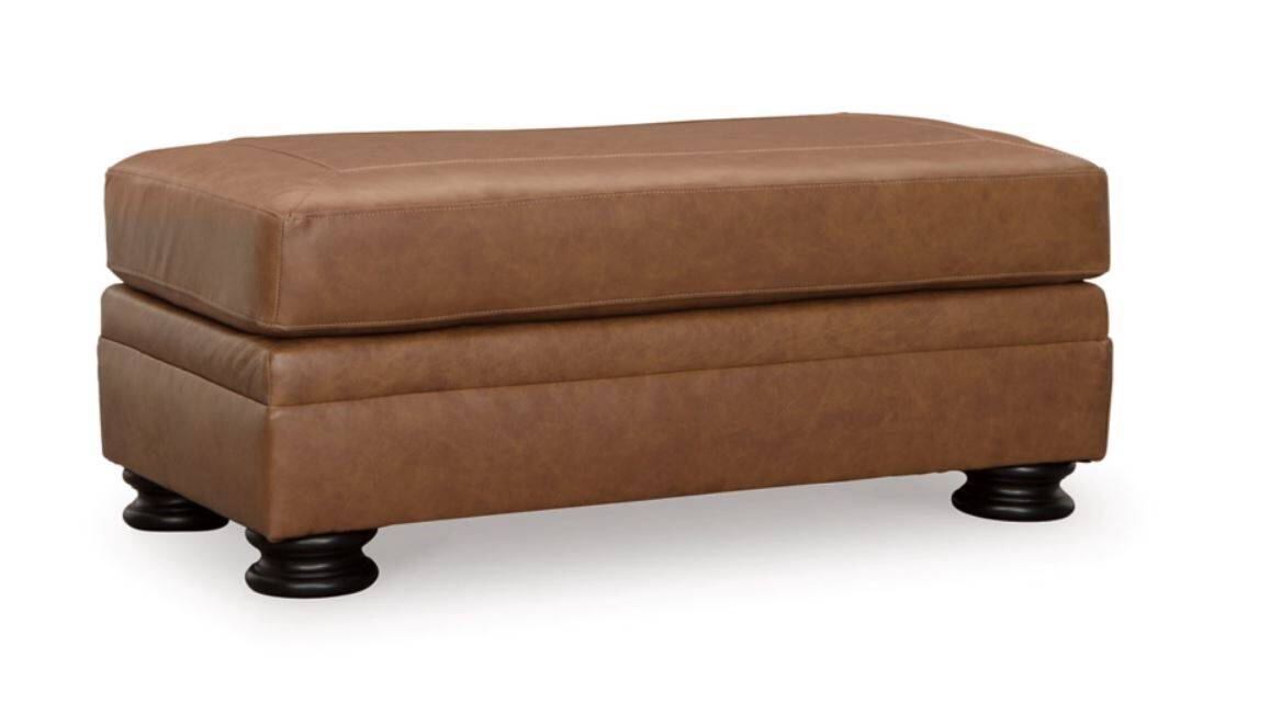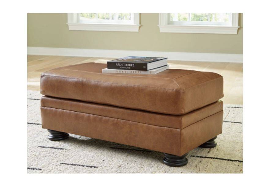 Merging traditional motifs with a modern hue, this ottoman ties your transitional seating area together. Turn legs support the comfortable cushion for a bit of extra flair. It’s approachable, yet luxurious. With this well-dressed footrest, everyday relaxation gets a distinctive upgrade.