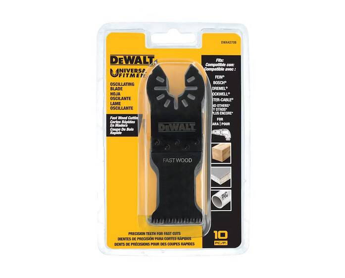 Featuring UNIVERSAL FITMENT™ for adapter-free use with all major oscillating tool brands, DEWALT Oscillating Blades power through a range of cutting applications, including wood with nails. Durable enough to tackle tough jobs.