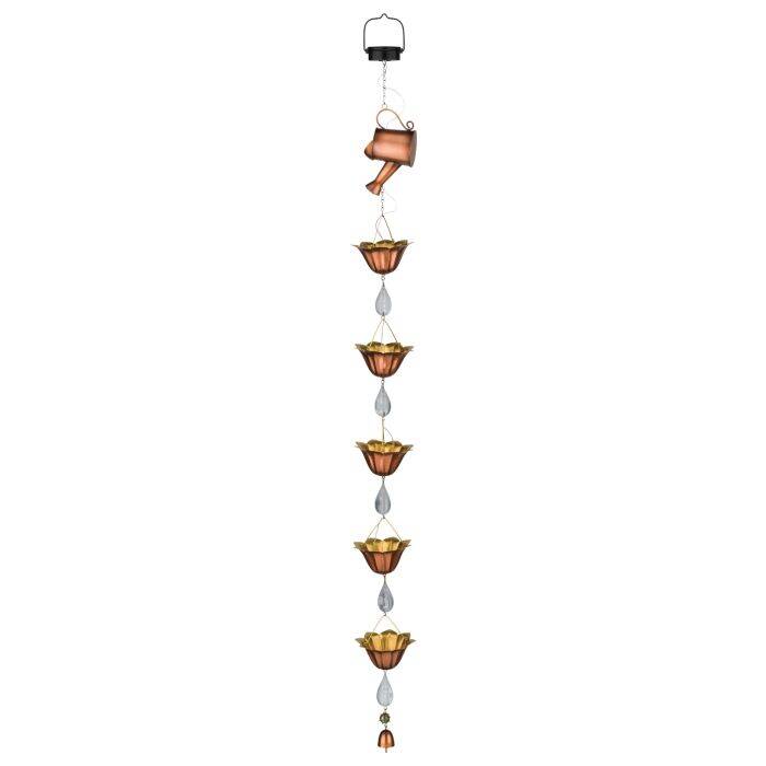 A solar rain chain that transforms any space with its mesmerizing waterfall effect. LED lights flow down the center, mimicking the look of cascading water. Hang it from a porch or tree to add an illuminating touch of elegance and tranquility.