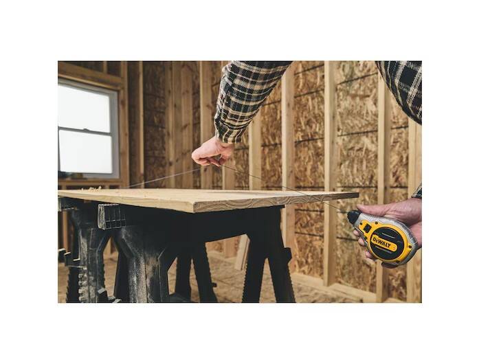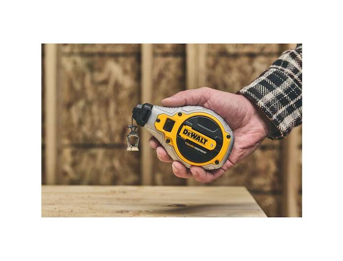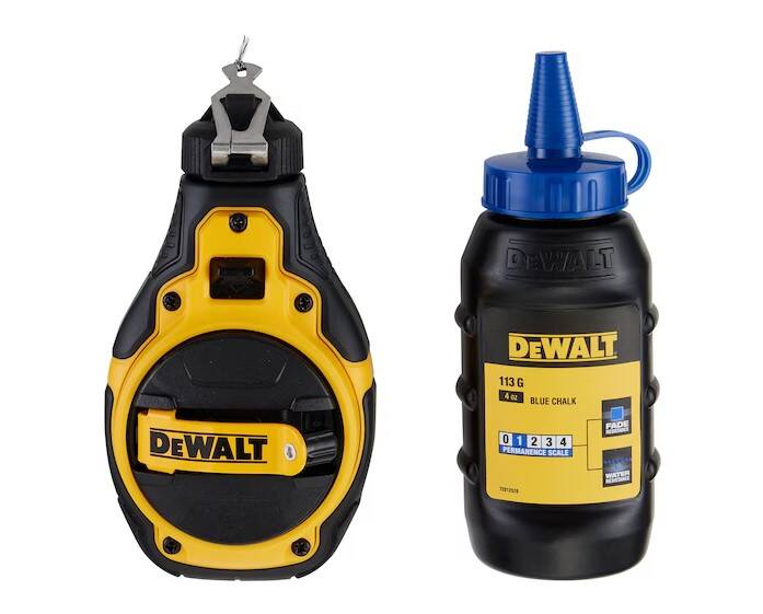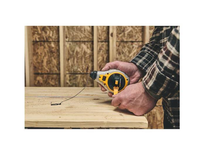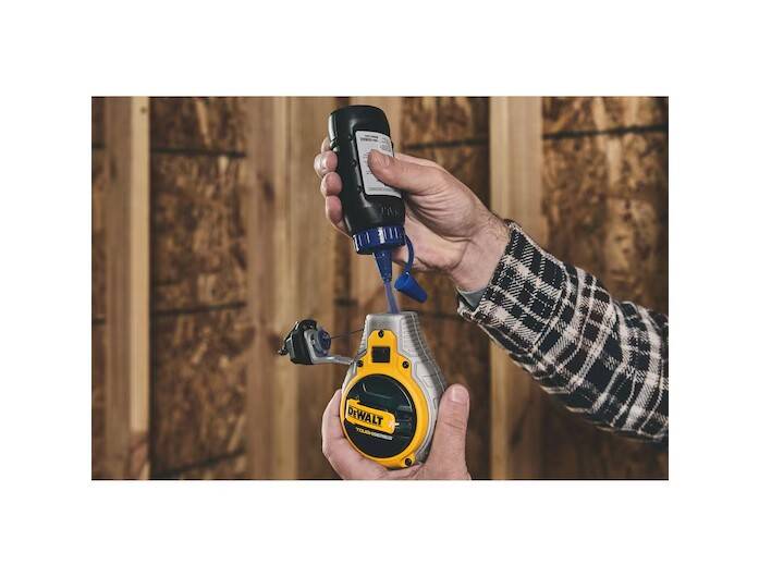 Create precise fine lines for finishing work and cabinet installation with the DEWALT® Bi-Material Chalk Reel (Blue). Help stay efficient on tough jobs with a 4:1 planetary gear system that rewinds 4X faster*. Get clear and crisp results using the 1mm precision braided string and line lock feature. A rubber overmolded housing provides durability on challenging jobsites. This Chalk Reel is ready to get to work with an included 4 oz. bottle of blue chalk.