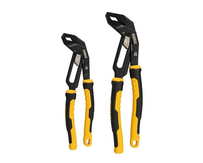 The 8" V-Jaw and 10" Straight Jaw SLIDELOCK Pliers provide more gripping area and a longer reach. The SLIDELOCK mechanism makes adjustments simple, While Its wider opening jaw can accommodate secure grip on wider bolts, nuts or pipes, making this a versatile must-have tool for your toolbox, workbench or tool belt. It also features non-pinching ergonomic grip handle for added comfort.