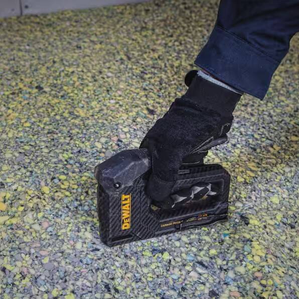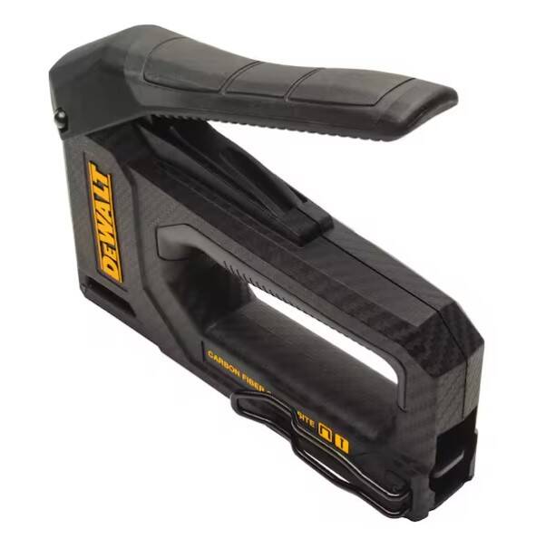 The DEWALT® Carbon Fiber Composite Staple Gun features a carbon fiber composite housing that weighs 50 percent less* and reduces muscle fatigue by 25 percent**. The quick and easy button load design and a low fastener indicator ensures the supply is ideal for repetitive jobs, like insulation and roofing or carpet underlayment. A reversible belt hook provides left or right-handed access.