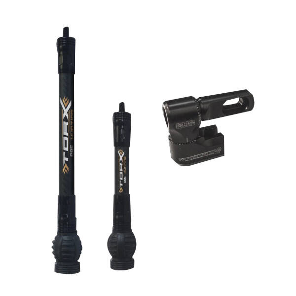 CBE Torx Hunting Stabilizer Kit, Carbon, Black, Includes: (1) 7-1/2 Stabilizer, (1) 11 in Stabilizer, TORX Stealth Dampener, 2 oz of Black Nitride Stainless Steel Weights, TORX Single Bow Mount, Adapter